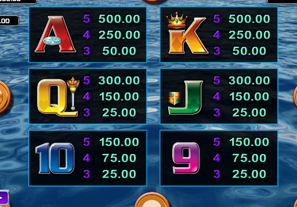 Среди всех изображений на барабанах вам могут попасться классические карты со значением от 9 до A. Их задача преподнести пользователю 25-500 ставок. Подобных символов в Wild Catch больше всего, поэтому именно с ними придется иметь дело.